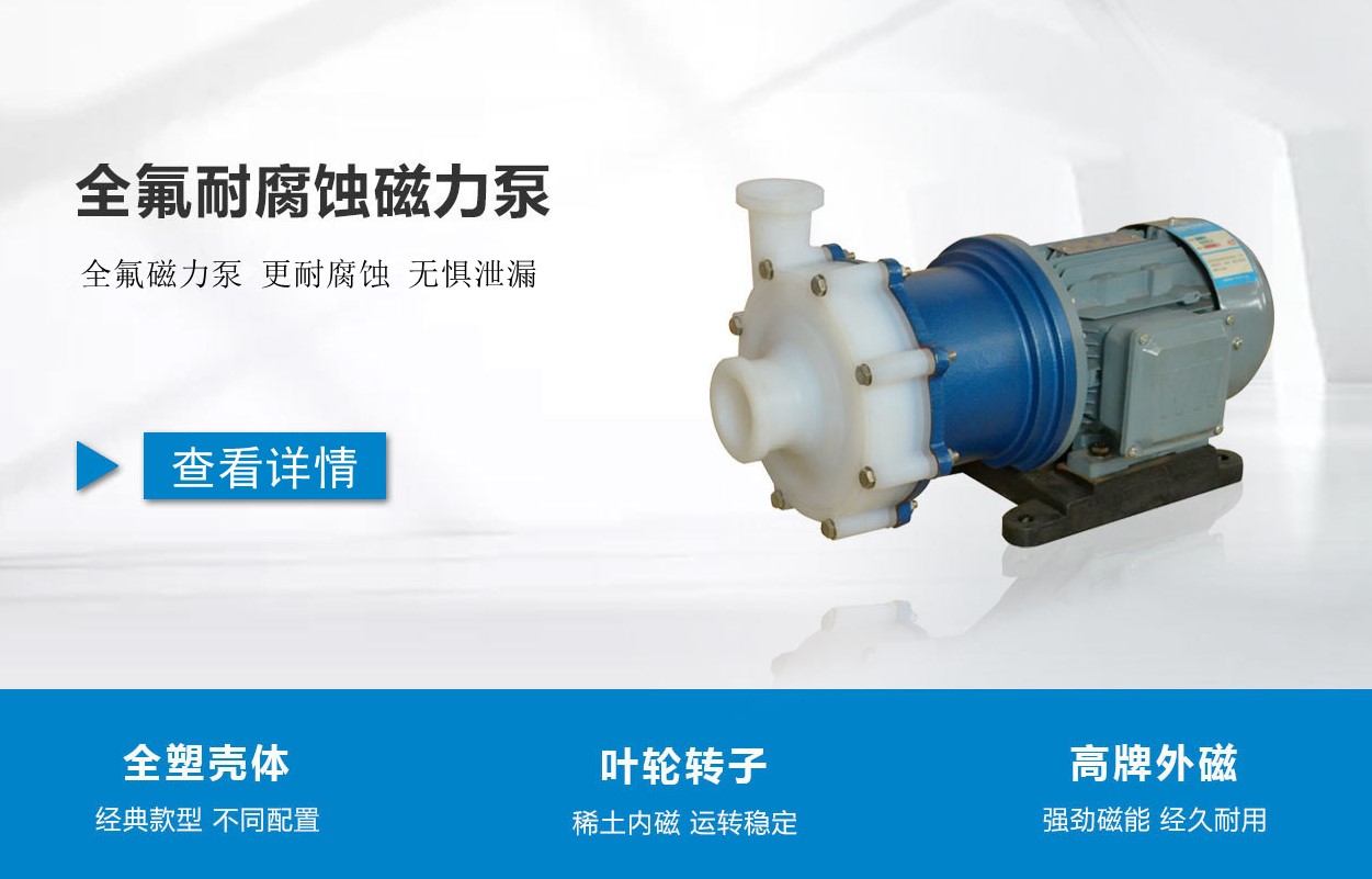 1、CQB-F型全氟塑料磁力泵是指過流部件為氟塑料材質的磁力驅動泵,又稱四氟磁力泵。